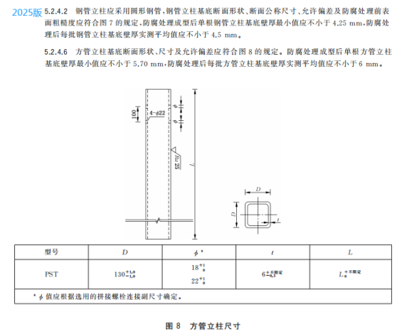 n) 更改了鋼管立柱、方管立柱和 H 型鋼立柱的尺寸要求(見(jiàn)5.2.4.2、5.2.4.6、5.2.4.10,2015年版4.2.4.2、4.2.4.6和4.2.4.10);
