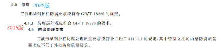 r) 更改了三波形梁板、三波形梁背板、過(guò)渡板、立柱、防阻塊或托架、端頭等構(gòu)件的材質(zhì)要求(見(jiàn)5.3.1,2015年版的4.3.1);